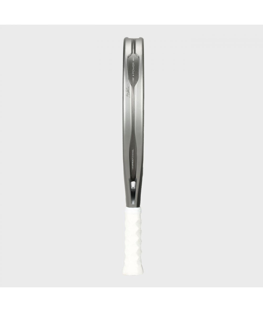 3Dgrain – A new polygonal-shaped finish of the racket that favors the grip, offering a better ball effect. The studied disposition of the pattern promotes the perfect balance between the ball’s effect and control.