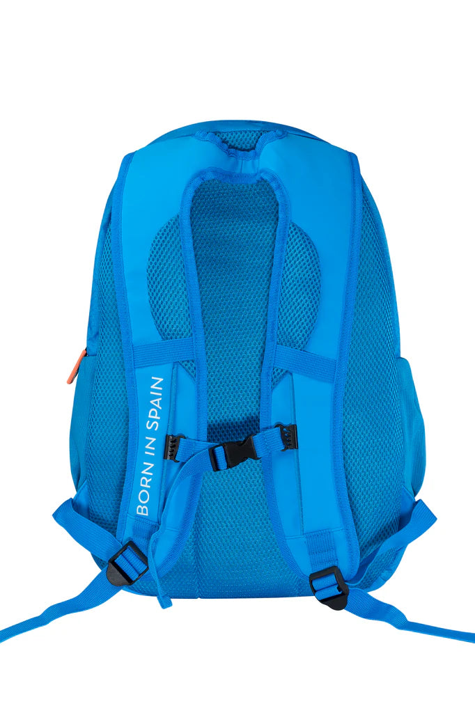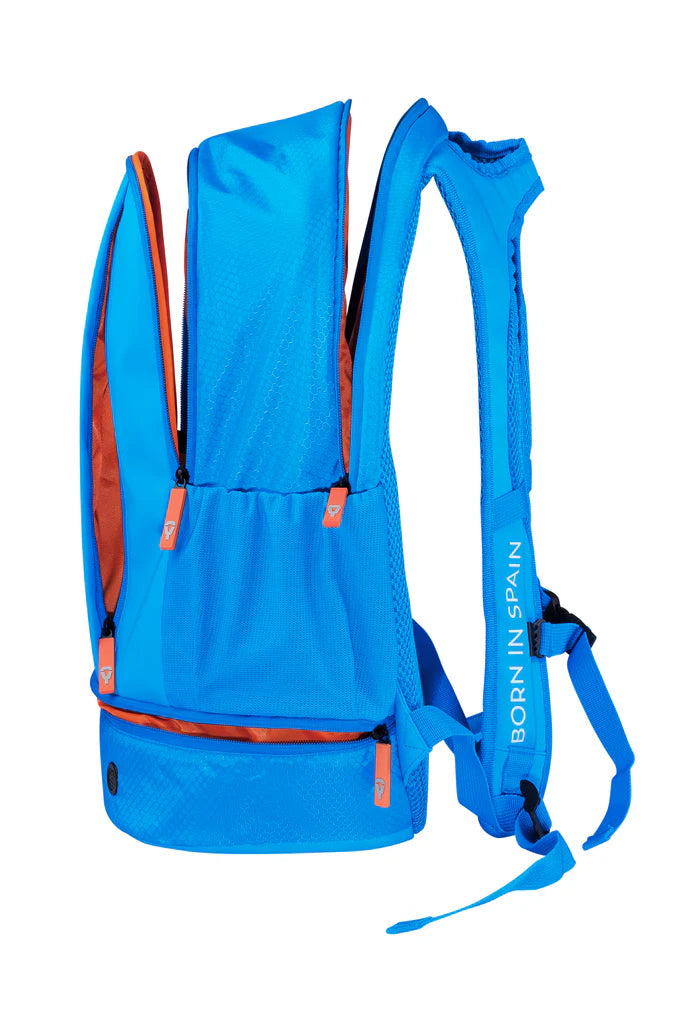 This fashionable and durable backpack is ideal for your padel equipment. Specially designed for padel players with easy access compartments in different sizes to store your padel shoes, (up to) two rackets, water bottle, balls, keys and phone. Easy and comfortable to carry thanks to the padded and shaped shoulder straps. Your padel equipment is fully protected by this waterproof backpack made of 100% PU leather. Available in black and blue.